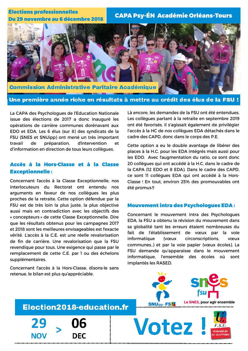 Vous êtes ici : Accueil Le SNES-FSU et vous Elections professionnelles 2018 CAPA PSY-EN Notre bilan, notre projet 22 octobre 2018 Le SNES-FSU et vous Notre bilan, notre projet Partager cet article :