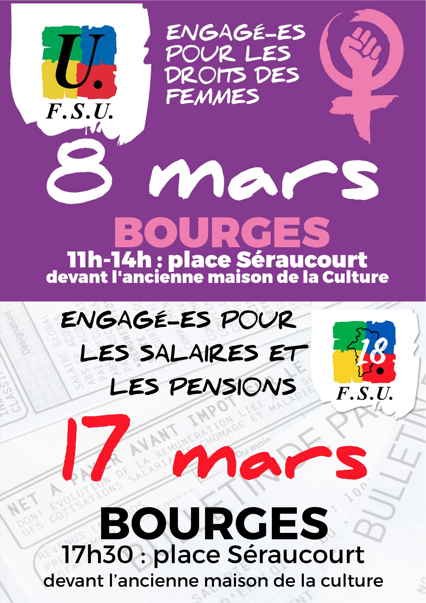 17 mars : engagé-es pour les salaires. C’est un mouvement de grève interprofessionnel porté par une intersyndicale forte composée, dans le département des organisations suivantes : FSU, CGT, Solidaires, UNSA