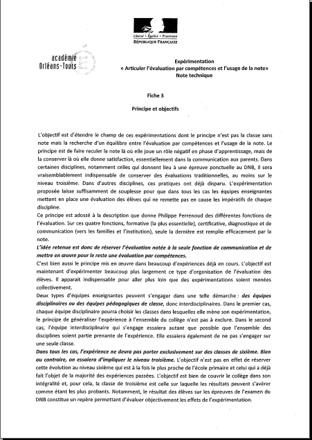 Fin juin, des collèges de l’académie ont vu arriver une « note technique » (envoyée par le doyen des IPR) destinée aux enseignants pour qu’ils expérimentent un nouvel équilibre entre « l’évaluation par compétences et l’usage de la note » (voir document ci-dessous).