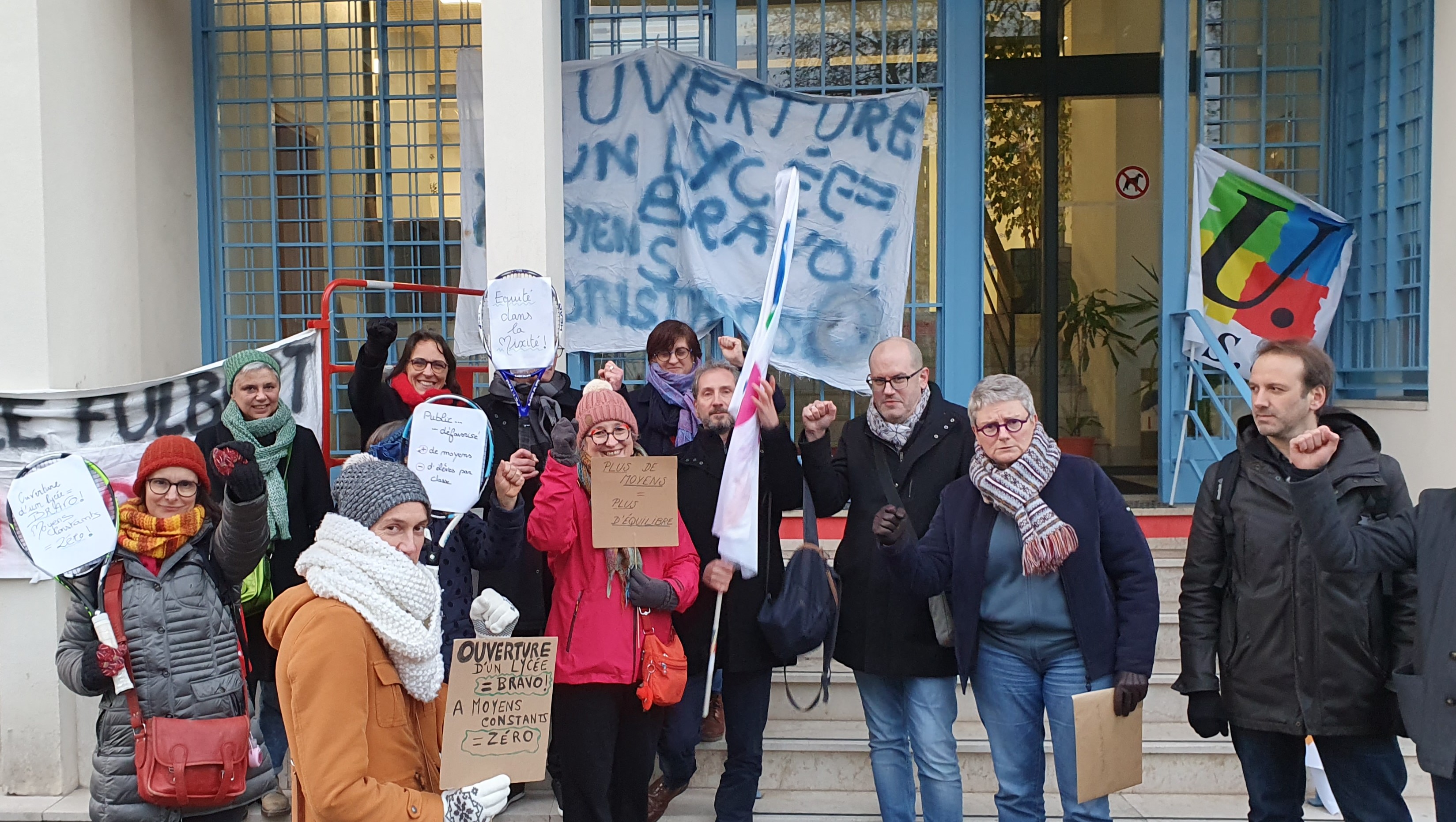 Ce mercredi 7 décembre, des collègues de plusieurs établissements d’Eure-Et-Loir se sont réunis devant la DSDEN pour remettre au recteur une lettre commune faisant part de leurs inquiétudes quant aux conséquences de l’ouverture du Lycée Joséphine Baker à la rentrée 2023. Dans cette lettre à l’initiative des militants SNES-FSU des lycées de Chartres et Dreux, signée par plusieurs centaines de collègues, nous revendiquons des moyens supplémentaires pour obtenir des conditions d’enseignement propices à la réussite de tous les élèves.