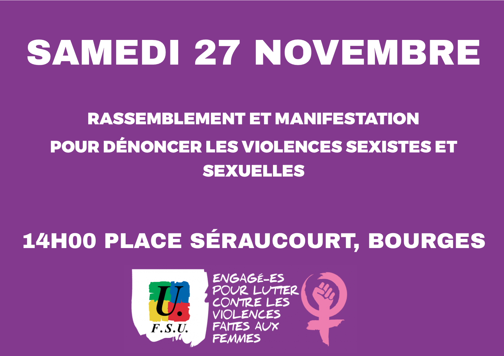 Pour dénoncer toutes les violences faites aux femmes, rassemblons-nous, nombreux samedi 27 novembre.