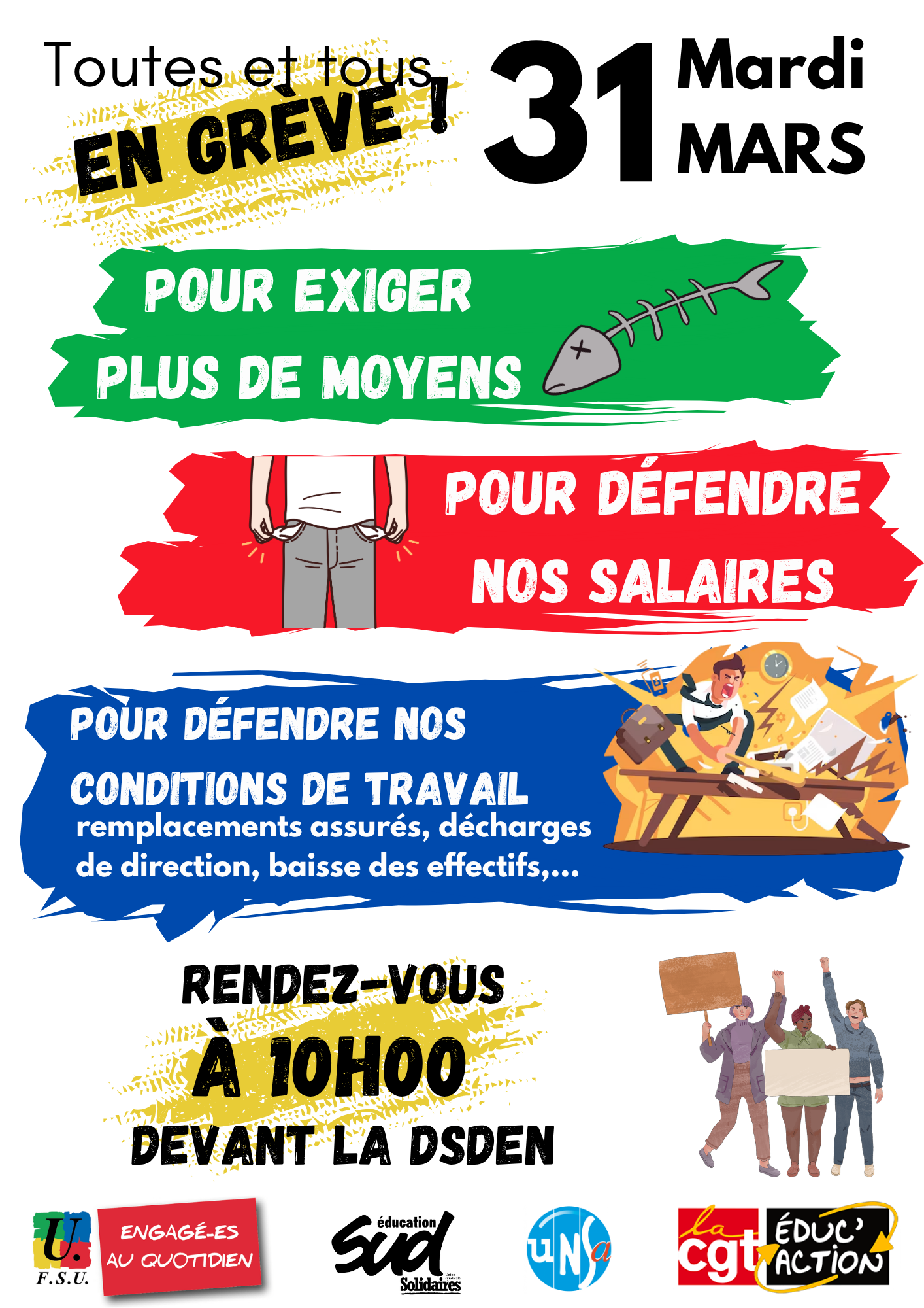 Pour le 1er degré : fermetures de classes, création de PAS à moyens constants. Remplacement : manque de personnel et nouvelle gestion catastrophique.