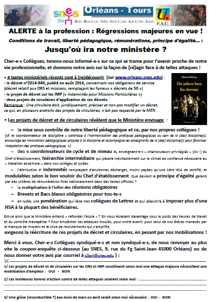 Vous êtes ici : Accueil Métier Actualités Nos obligations de service : Alerte à la profession ! 1er mars 2015 Métier Nos obligations de service : Alerte à la profession ! Partager cet article : Ci-dessous le tract d’alerte, à diffuser dans les établissements :
