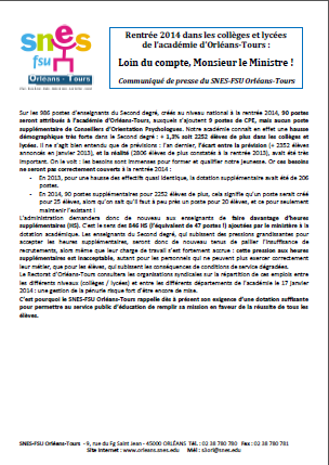 Ci-dessous les premiers chiffres concernant les effectifs et postes attribués pour la rentrée 2014, au niveau académique, assortis de quelques commentaires et rappels :