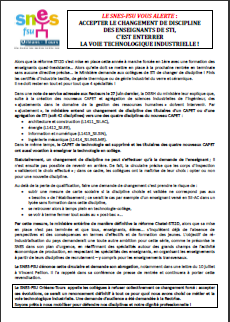 Dès à présent, nous alertons les collègues de STI de l’académie pour qu’ils se tiennent prêts à la riposte collective : diffusons au maximum le tract ci-dessous !