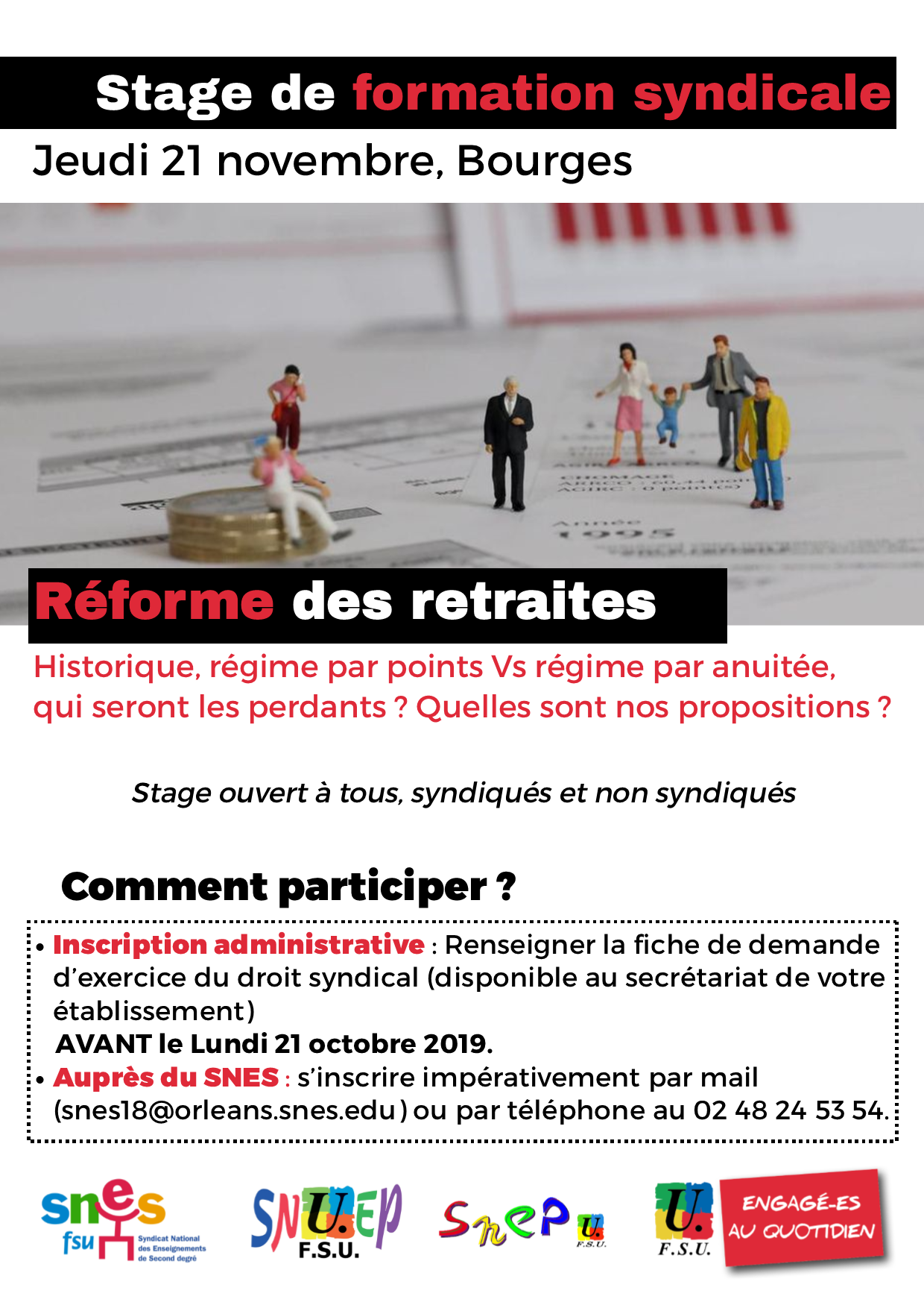 Inscrivez vous par mail auprès de la section du SNES-FSU du Cher (snes18@orleans.snes.edu) et auprès de l’administration avant le lundi 21 Octobre.
